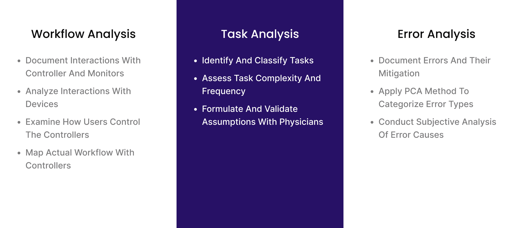 Task & Workflow Analysis: systematically mapped user interactions with existing devices to pinpoint inefficiencies, hand-off moments, and areas where the interface broke down under real conditions.